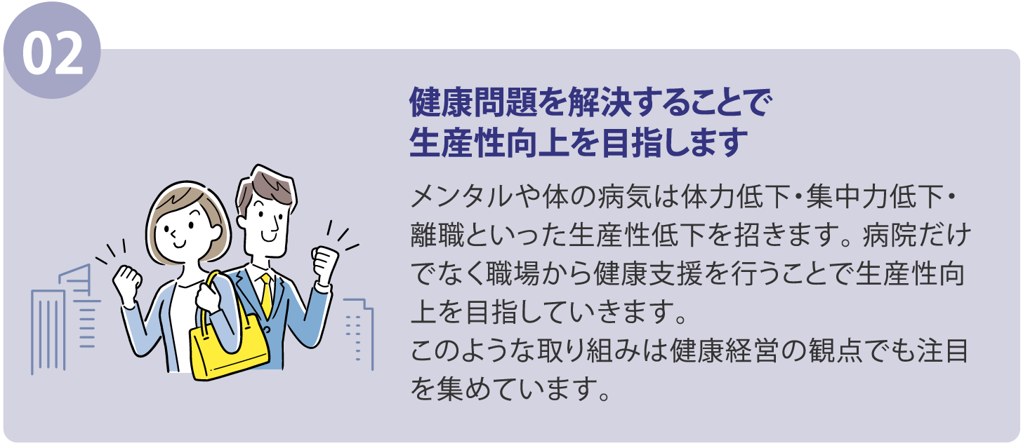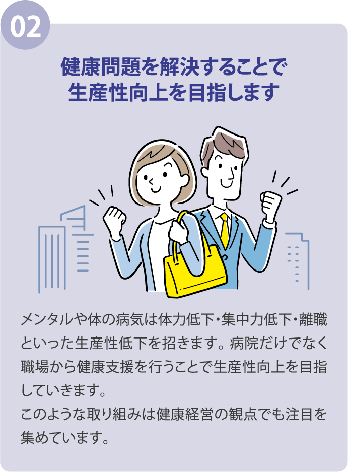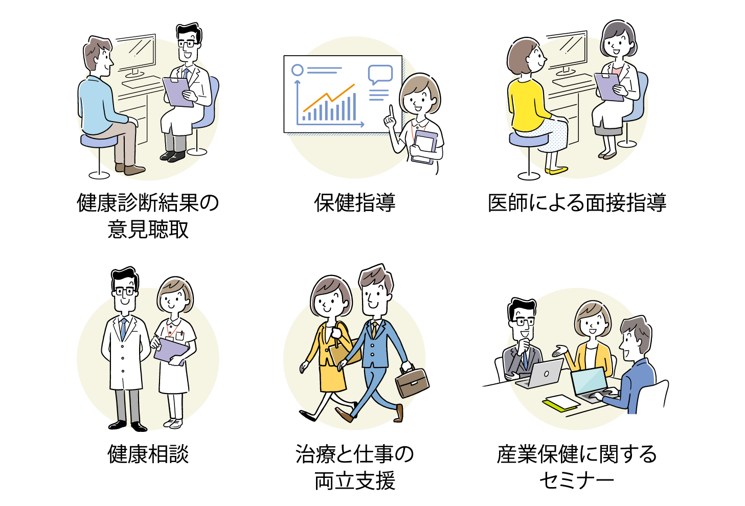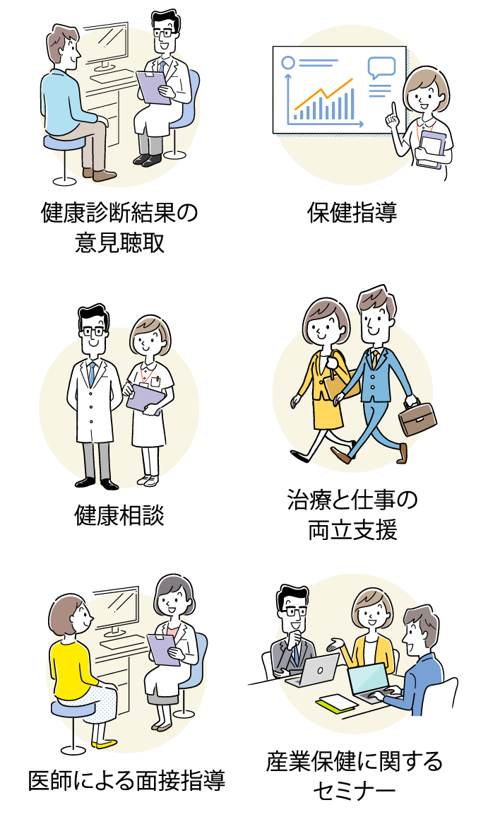職場での健康問題の予防や管理、労働者の健康教育の提供、健康的な作業環境の確保などに取り組みます。