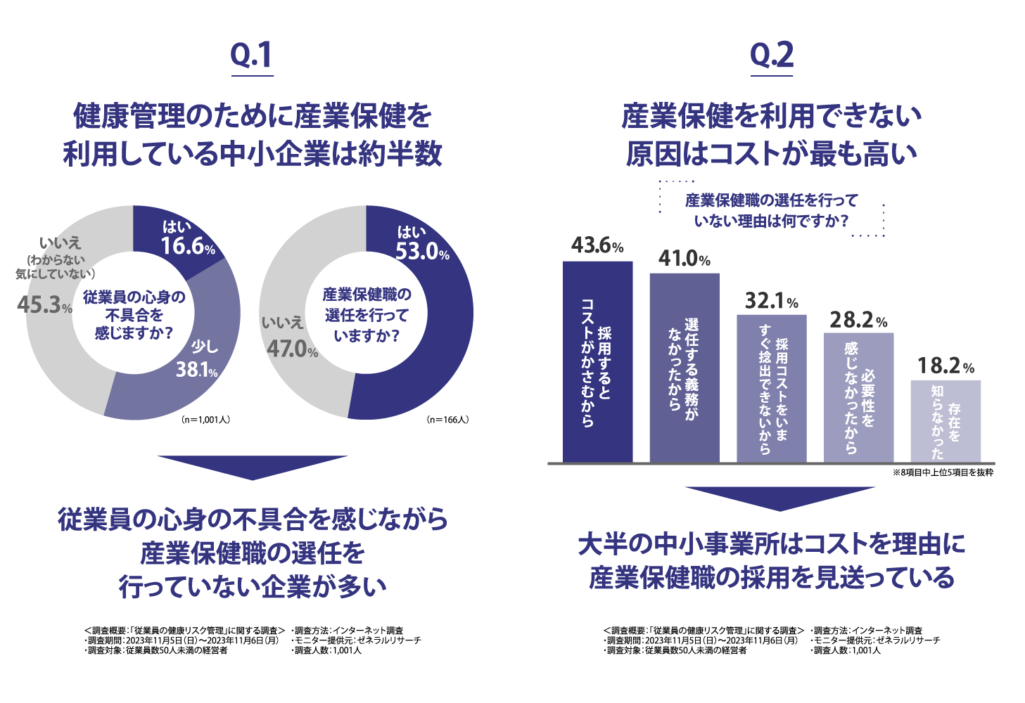 「産業保健」が十分に行えないことで健康状態が悪化してしまった結果、安全配慮義務違反を問われることも増えており、リスク管理の意味合いでも注目を集めています。