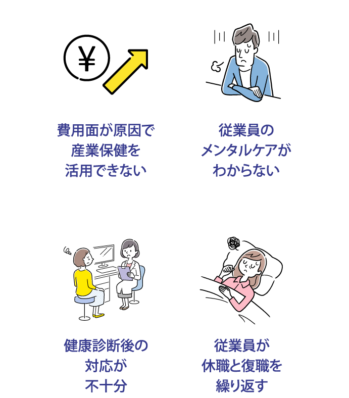 多くの事業所が従業員の健康問題・メンタルヘルス対応・健康経営に課題感を持っているといわれています。